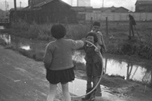 s33にいきた小橋付近で遊ぶ子ども